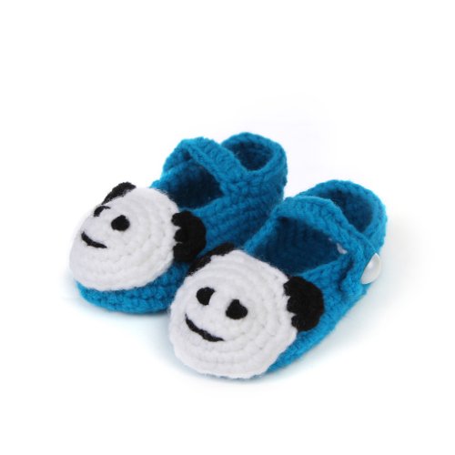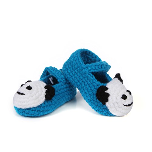 Yuelian 手編みベビーシューズ パンダ―図案 ボタン靴ひも付き (ブルー)
