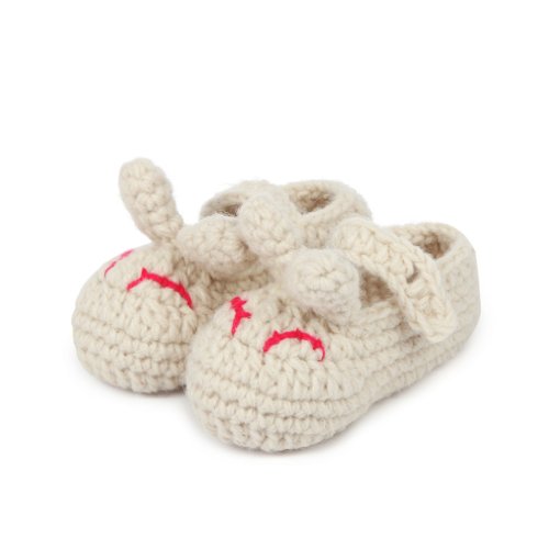 Yuelian 手編みベビーシューズ ウサギスタイル ボタン靴ひも付き (グレー)