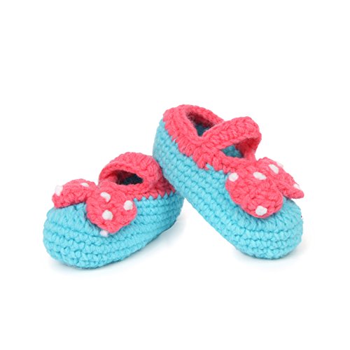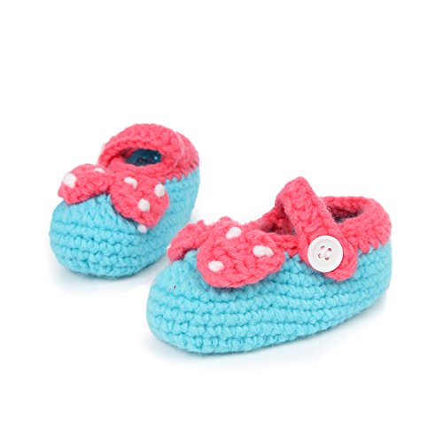 Yuelian 手編みベビーシューズ 蝶結び ボタン靴ひも付き ブルー