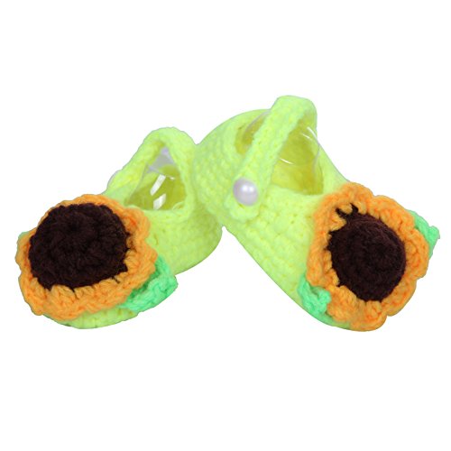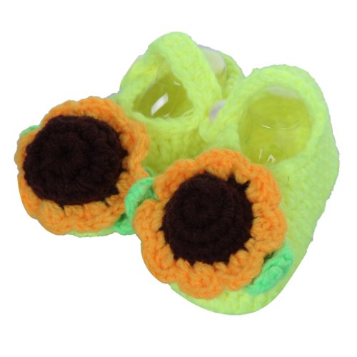 Yuelian 手編みベビーシューズ イエロー向日葵 ボタン靴ひも付き (蛍光黄色)