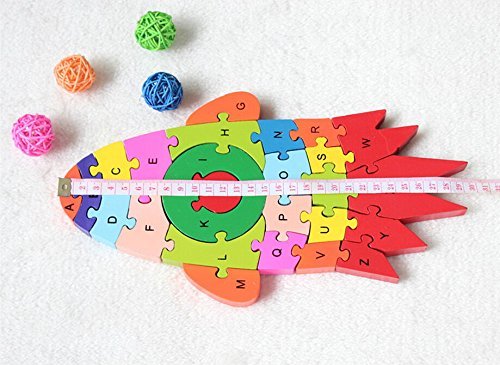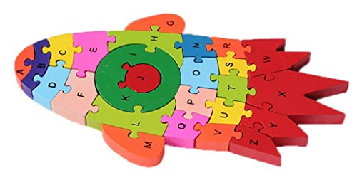 Yuelian(TM) 子供知育玩具 幼児 木製のおもちゃ 玩具 アルファベットや数字 木製パズル 組み合わせ 遊具 ロケット