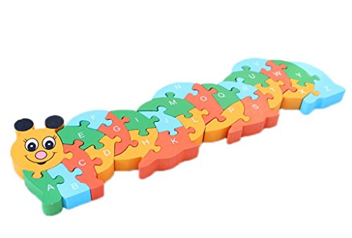 Yuelian(TM) 子供知育玩具 幼児 木製のおもちゃ 玩具 アルファベットや数字 アニマル 動物 遊具 木製パズル 組み合わせ ケムシ