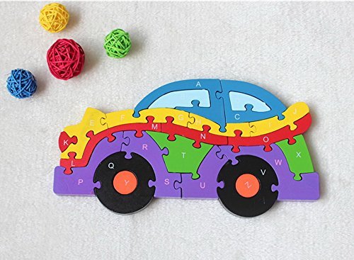 Yuelian(TM) 子供知育玩具 幼児 木製のおもちゃ 玩具 アルファベットや数字 木製パズル 組み合わせ 遊具 乗用車