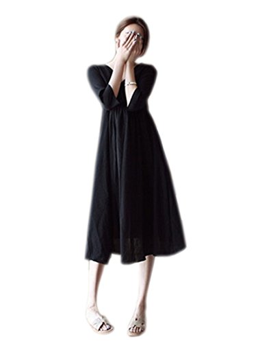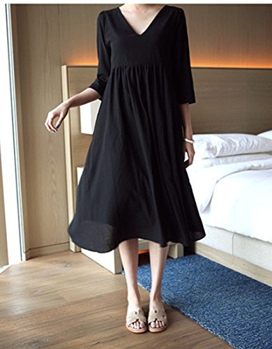 Yuelian(TM) マタニティウェア 大きいサイズ Aライン レディース ロング ひざ丈 薄手 マタニティワンピース 妊婦服 出産祝いのプレゼント ([M], 2 ブラック)
