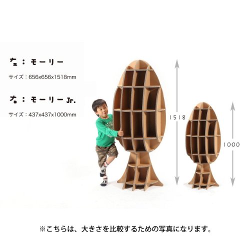 〈ダンボール家具・段ボール遊具〉強化段ボールの本棚・木のシェルフ「モーリー」 キッズデザイン賞受賞