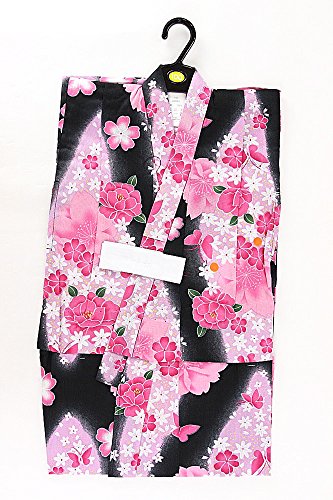 【子供浴衣】100/110/120/130サイズ 女の子 女物 ゆかた ユカタ 夏祭り 盆踊り キッズ ジュニア 綿100% 夕涼み yukata 女児 メール便不可 100 11.黒×ピンク×紫(花)