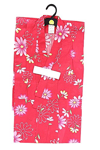 【子供浴衣】100/110/120/130サイズ 女の子 女物 ゆかた ユカタ 夏祭り 盆踊り キッズ ジュニア 綿100% 夕涼み yukata 女児 メール便不可 100 1.濃ピンク(花)