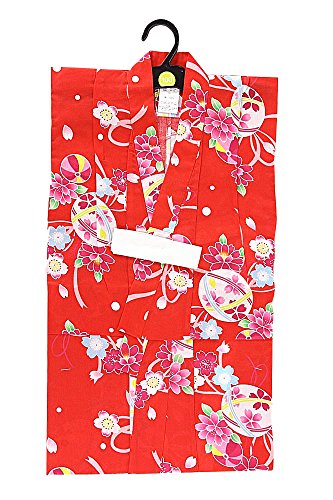 【子供浴衣】100/110/120/130サイズ 女の子 女物 ゆかた ユカタ 夏祭り 盆踊り キッズ ジュニア 綿100% 夕涼み yukata 女児 メール便不可 100 7.赤×ピンク(花・まり)