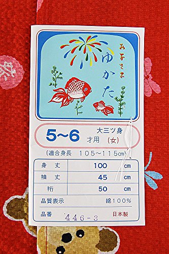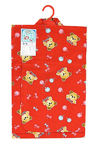 子供浴衣 100~110サイズ 5~6歳 大三ツ身 リップル 女の子 綿100% 日本製 1.赤(くま)