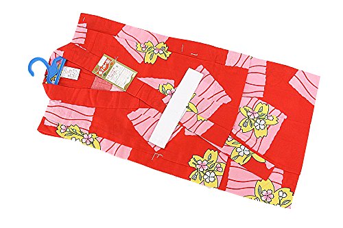 子供浴衣 130サイズ 9-10才 女の子 ジュニア 仕立て上がり 揚げ済み こども浴衣 子供服 9-10才 9.赤×黄×ピンク