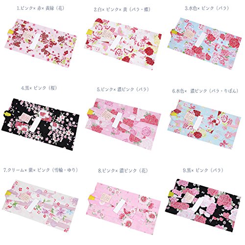 子供浴衣 100サイズ 綿100% 女の子 キッズ 100 14.ピンク×えんじ(まり・桜)