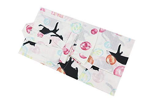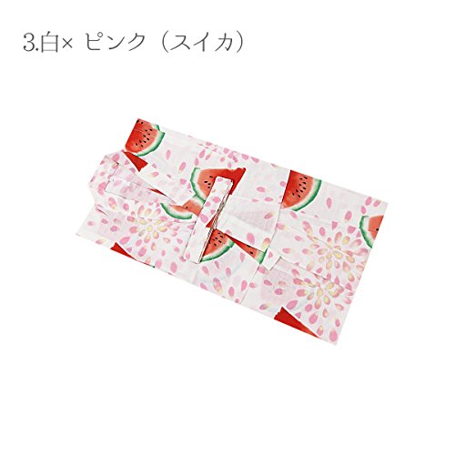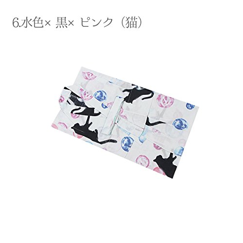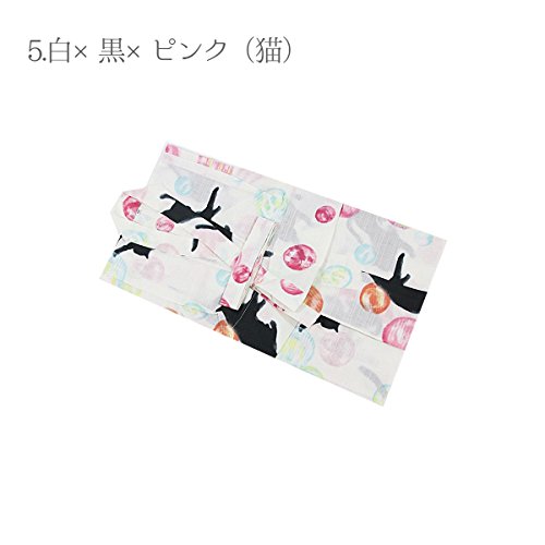 子供 浴衣 110 120 130cm 綿100% 女の子 キッズ 130 5.白×黒×ピンク(猫)