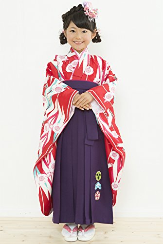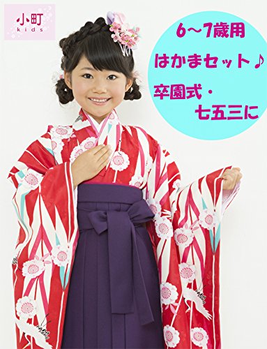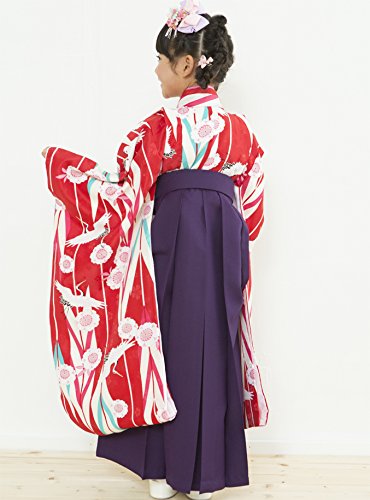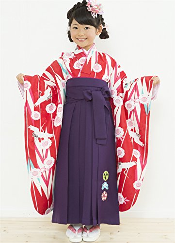 【新柄 小町kids 6~7歳用二尺袖着物+長襦袢+袴セット 着物:着物:えんじ×クリーム(矢羽根・鶴・桜)袴:紫】 緑 袴下帯付 揚げ済み 幼稚園 保育園 卒園式 小学生 ジュニア 晴れ着 お祝い きもの 女の子 七五三 小さいサイズ
