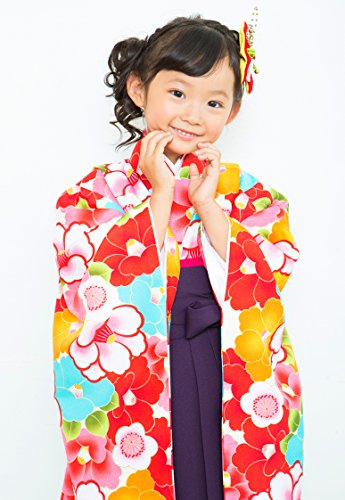 2017年新柄 小町 6~7歳用二尺袖着物+長襦袢+袴セット クリーム(椿)袴 紫 女の子