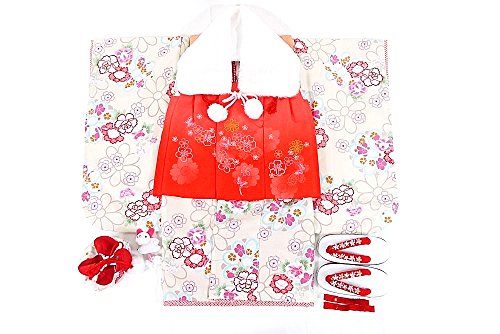 キクチリョウコ 被布セット 祝着 着物 ブランドポリエステル 草履 バッグ ショール 髪飾り三歳54.クリーム×オレンジセット