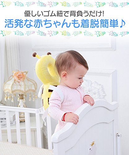 しあわせ倉庫 赤ちゃん あたま ガード リュック かわいい 頭 保護 クッション つかまり立ち (ハチ メッシュ イエロー)