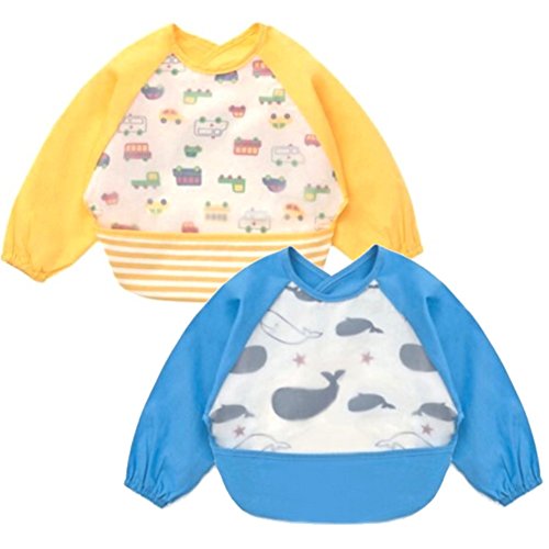 しあわせ倉庫 お食事エプロン スタイ ベビー 赤ちゃん よだれかけ 長袖 エプロン セット (黄 青)