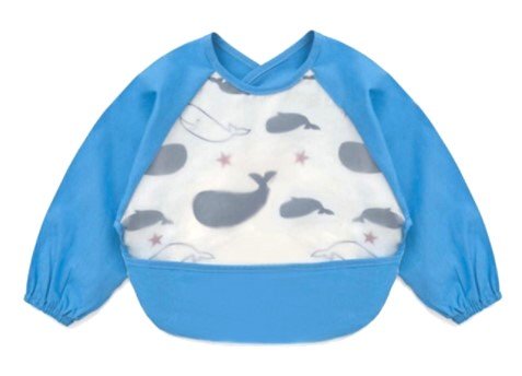 お食事以外にもお絵かきやお砂遊びの時などにも!長袖タイプなので、お洋服の肩や袖を汚れから守ってくれます。