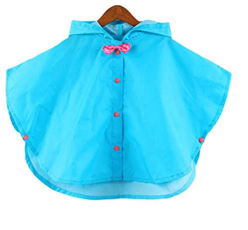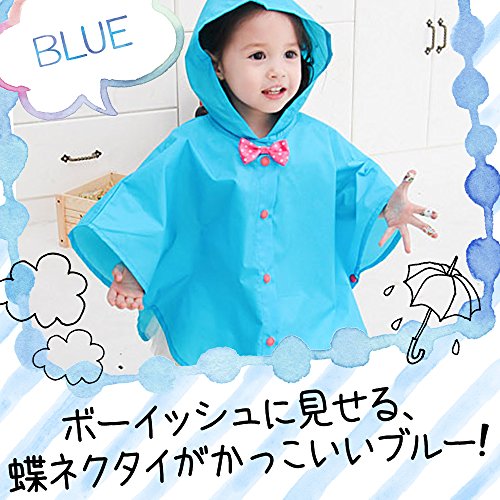 しあわせ倉庫 リボンが可愛い キッズ レインコート ポンチョ カッパ 子供 通学 通園 男の子 女の子 (ブルー)