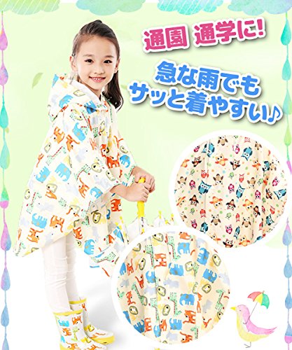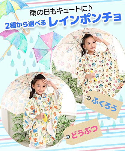しあわせ倉庫 フクロウの キッズ レインポンチョ カッパ 子供 通学 通園 ポーチ付き (動物ズ)