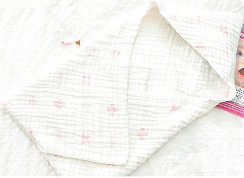 ふんわりやわらか6重ガーゼ 6重ガーゼはその名の通り6層のガーゼからできた生地です。 外側の1・6層目の糸は細く、2・5層目の糸はやや太く、真ん中の3・4層目の糸はとても太くなっています。これが空気をたっぷり含んで”ふっくら感”を出すひみつ。お洗濯をするとさらに肌触りが柔らかくなり、空気を含んでふわふわになります。 6重に重ねたガーゼが空気の層を作り湿度を保つことができるため冬でも暖かです。通気性・速乾性が高いので、暑いときは素早く汗を吸収しムレません。1年を通して心地よく使えます。