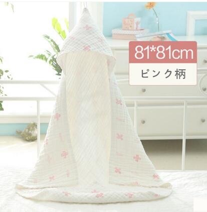 ベビーマント 綿 バスタオル 6重ガーゼスリーパー 花柄 タオル (フリーサイズ, ピンク柄)