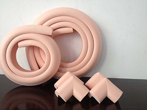 JUST 赤ちゃん のケガ防止 安心セット (コーナーガード クッション 3m(2m+約1m) + L型 コーナーパッド4個) 【色選べます】 ベビー ベッドやテーブル、柱の角にも L字 L字型 (ピンク)