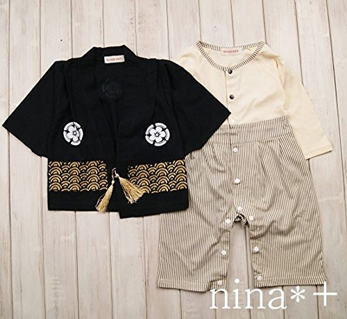 ベビー 男の子 着物 袴 和装 初節句 お食い初め お宮参り 赤ちゃん ロンパース (90)