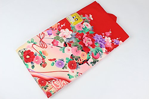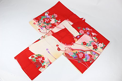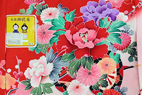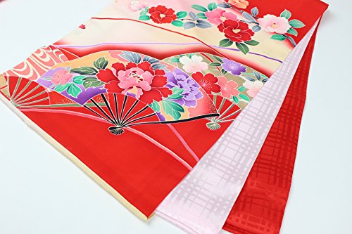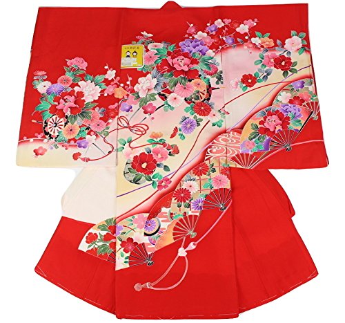 御祝着(のしめ)UP-17 お宮参り ポリエステル 女児 産着 赤色 牛車と扇子