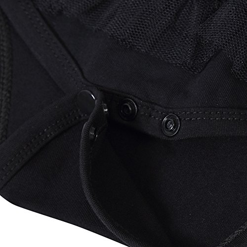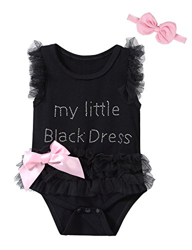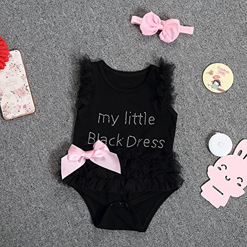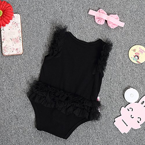 ベビー 用品 レース ロンパース 前開き 新生児 赤ちゃん 出産祝い 肌着 女児 ヘアーバンド 2点セット (100cm, ブラック)