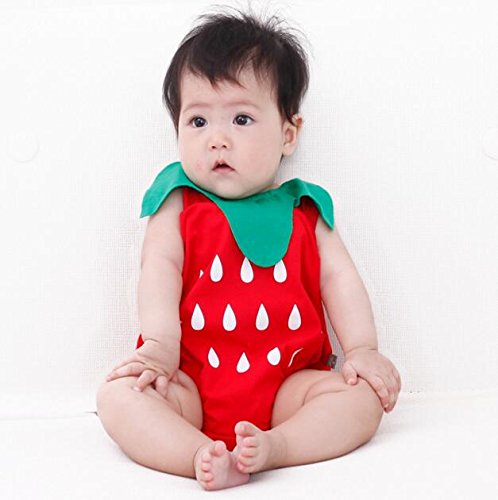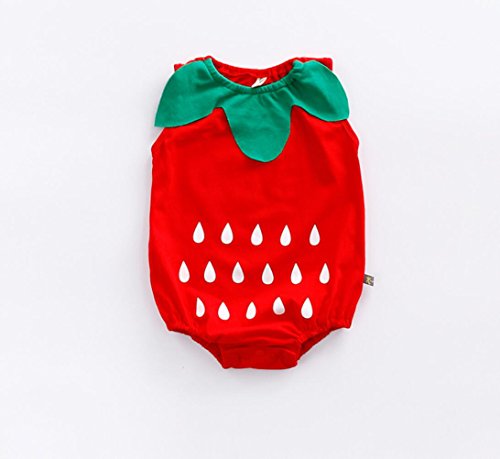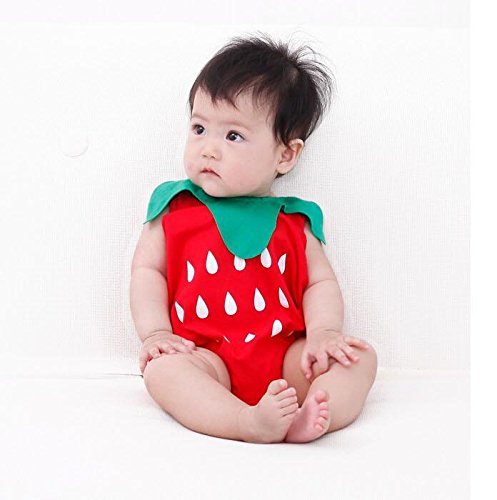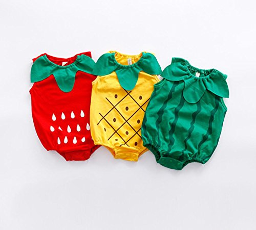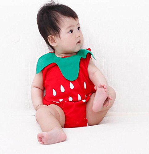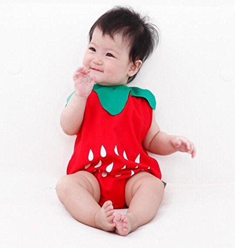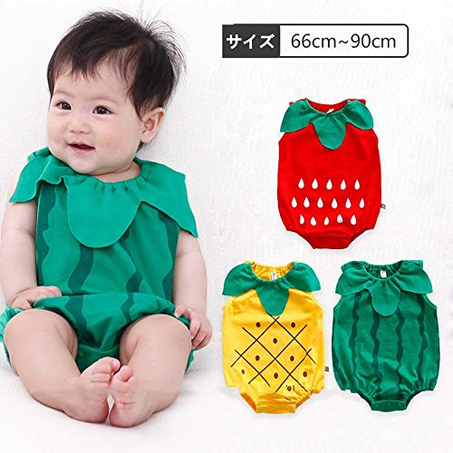 可愛い 果物 ベビー服 新生児から ロンパース 無袖 カバーオール 綿100% 赤ちゃん 男の子 女の子 ボディースーツ撮影用 出産祝い・お祝いギフト・誕生日プレゼントにぜひ いちご パイナップル スイカ (8-11months, レッド)