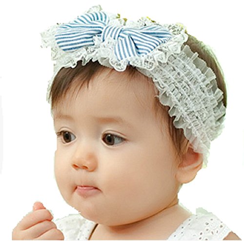 ブルーストライプレースリボンベビー用ヘアバンド