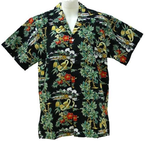 沖縄アロハ 黒 子供ー大人用 AG-J729 (大人 3L)