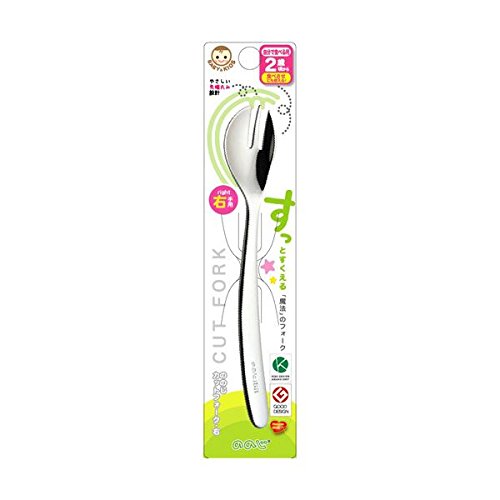 「ののじ カットフォーク 右手用 自分で食べる用 2歳頃から」は、端面の角をなくしたスリ加工で『刺す』『すくう』『カットする』がスムーズに出来るベビー用カットフォークです。安全に配慮した先端丸み設計。お子様が自分で食事をする際だけでなく、お母さんが食べさせてあげる時にも便利です。持ち易い楕円断面で、箸への移行を促すロングハンドル。丹念に磨いたなめらか仕上げで、鉄の味がしない18-8ステンレスを使用。洗い易く衛生的です。右手用。