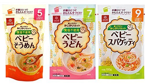 - セット内容(3種類各種3袋):はくばく 食塩不使用 ベビーそうめん 100g×3/はくばく 食塩不使用 ベビーうどん 100g×3/はくばく 食塩不使用 ベビー スパゲティ 100g×3