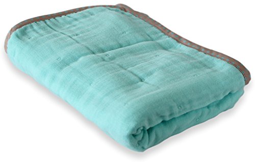 はぐまむ hugmamu 日本製 プレミアム ガーゼケット 6重 S ミントブルー (グレードット) 1584A-02-GY-D