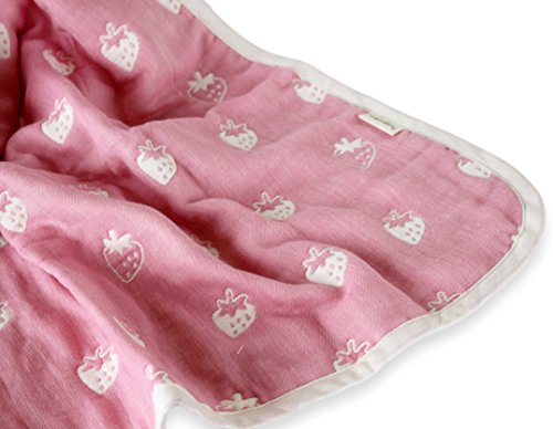 はぐまむ hugmamu 日本製 ガーゼケット 5重 M (ベビーサイズ) リトルパーティー ピンク (イチゴ) 1513-01