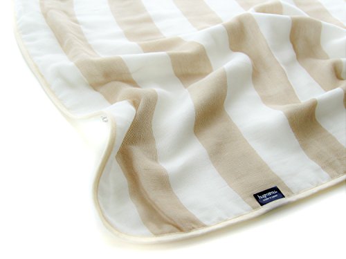 はぐまむ hugmamu 日本製 ガーゼケット ふんわり 5重 (MS, ボーダー ベージュ) 6846-08