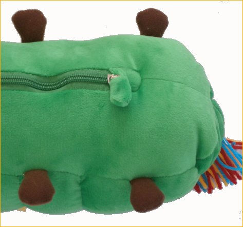 いつも変わらぬ可愛さと人気でみんなに愛されている、はらぺこあおむしさんのビーズクッション兼サポートピローです。 昨年45周年を迎えた、長く皆様に愛されている人気キャラです。あのエリック カールの作品です 中にいっぱいビーズを詰め込んだクッションですので、とってもしっかりとした仕上がりとなっています。 体長は38cmあります。クッションとして 抱き枕として、ぬいぐるみとしてインテリア用品として大活躍いたします。 お腹についたファスナーを開けて、中から布地を取り出してビーズを移動させひっくり返すと、なんとサポートピローに大変身いたします。 一つあるととっても便利な、お子様の首をしっかりホールドするサポート枕の出来上がりです。 ドライブやお出かけの時、お子様はすぐ寝ちゃいますよね。そんな時便利なのがサポートピローです お子様の首に巻いてあげれば、首がしっかりと安定し安心してお出かけできます。 ちょっとしたお昼寝のときも使えるし色んな使い方が出来ます。 あおむしさんがしっかりと首をサポートしますので、首がぐらぐら不安定な状況を解消いたします。 普段はクッションとして、お子様が寝てしまったらサポートピローとして大活躍します。 車の中に置いておいてもいいですね。 出産祝いやギフトの付け合せにも重宝いたします。 サイズ クッション時 体長38cm サポートピロー時 27cmx27cm