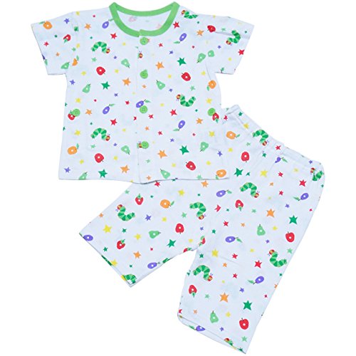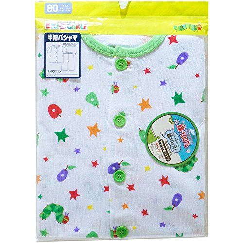 【本体綿100%】2017年 夏物 はらぺこあおむし ニット楊柳 前開き総柄 半袖パジャマ THE WORLD OF ERIC CARLE グリーン◇90cm