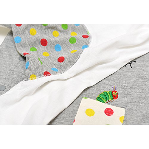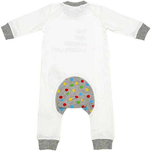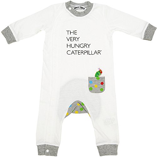 2017年 春物 はらぺこあおむし 天竺 ポケット付き モンキーロンパース カバーオール THE WORLD OF ERIC CARLE オフホワイト◇70cm