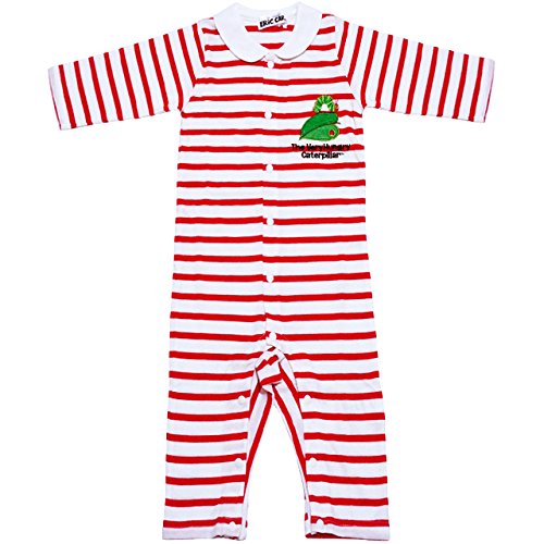 2017年 春物 はらぺこあおむし 天竺 ボーダーロンパース カバーオール THE WORLD OF ERIC CARLE レッド◇80cm