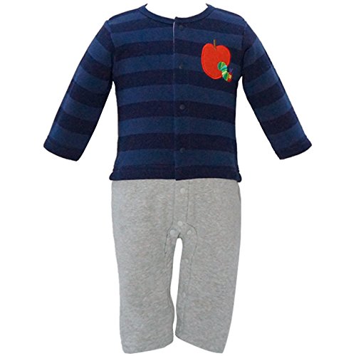 2017年 秋冬 はらぺこあおむし パイル起毛 ボーダー カバーオール THE WORLD OF ERIC CARLE 上ネイビー-下グレー◇80cm