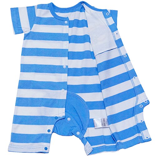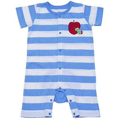 2018年 夏物 はらぺこあおむし 天竺 ボーダー柄 半袖カバーオール THE WORLD OF ERIC CARLE サックス◇70cm