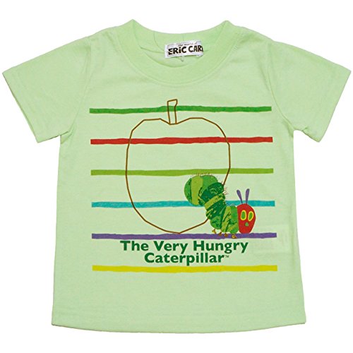 2017年 夏物 はらぺこあおむし 天竺 りんごライン柄 半袖Tシャツ THE WORLD OF ERIC CARLE グリーン◇80cm