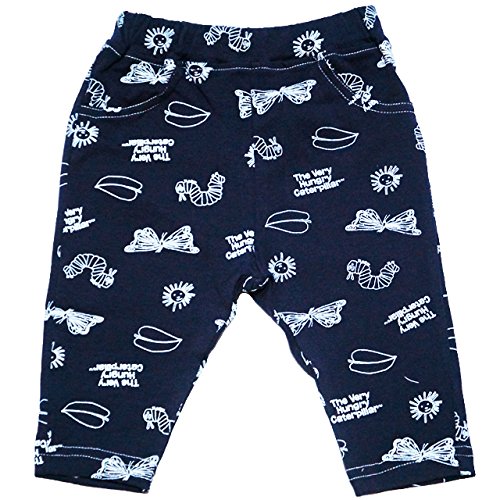 2017年 夏物 はらぺこあおむし 天竺 総柄 7分丈ストレッチパンツ THE WORLD OF ERIC CARLE ネイビー◇80cm