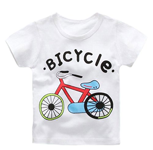 ふく福 可愛いキッズベビーTシャツ 子供服 幼児上着 薄手ソフト 春夏 男女兼用 お出かけ 出産祝い パジャマ鹿 チキン象 漫画の柄 (80cm, 自転車)