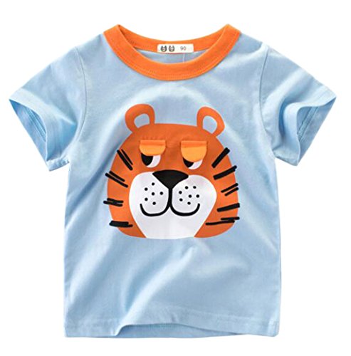 ふく福 可愛いキッズベビー半袖Tシャツ 子供服 幼児上着 薄手ソフト丸首 春夏 男の子 お出かけ 出産祝い プレゼント虎 ライオン 漫画の柄 2歳-10歳 (虎, 130cm)
