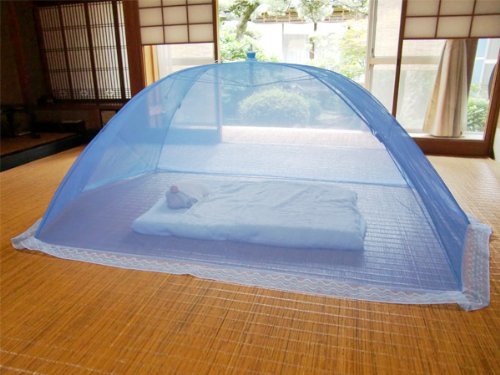 日本製 麻混で涼しい ベビー添い寝蚊帳・大人用蚊帳・昼寝蚊帳 片麻 広げた時215×125×高さ74cm