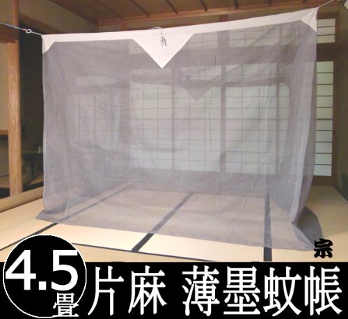 日本製 奈良の特産 国産蚊帳 片麻 4.5畳用 洋室にも合う粋な色薄墨(グレー) 4.5帖用【吊り手無料サービス】